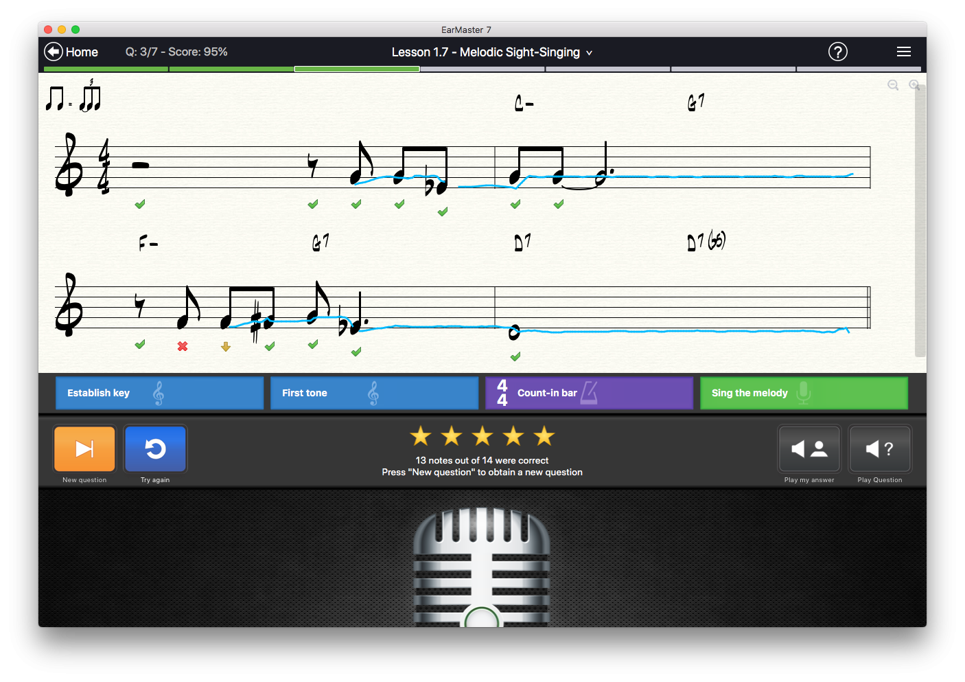 EarMaster 7 è l'applicazione più semplice ed efficace per diventare un musicista migliore. Con oltre 2500 esercizi interattivi che coprono tutti gli aspetti fondamentali dell'ear training, del canto e della parte ritmica, EarMaster è un trainer completo di teoria musicale che ti guiderà verso un perfezionamento musicale, indipendentemente dal tuo attuale livello di competenza.