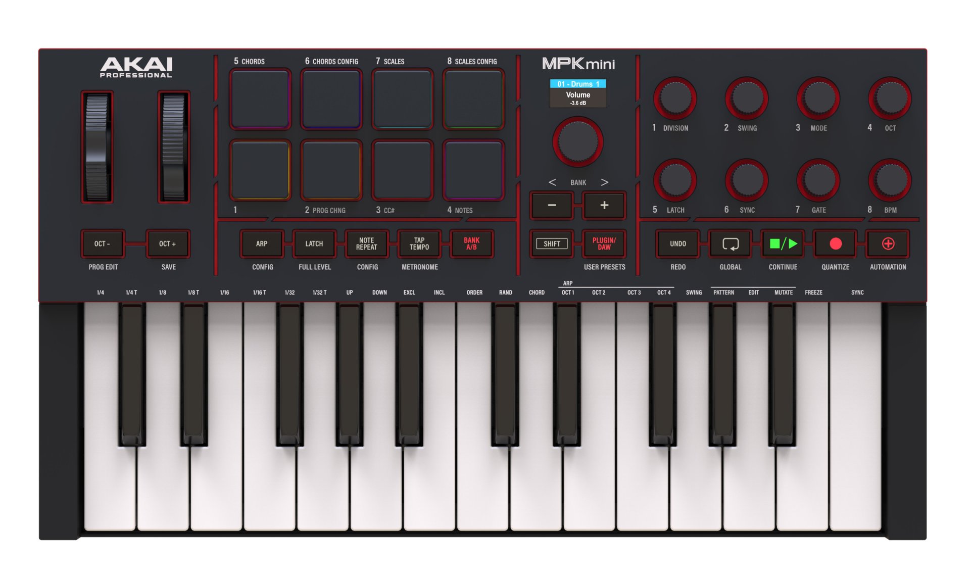 AKAI Professional MPK Mini IV è uno strumento potente e compatto, appositamente progettato per rendere semplice ed immediato il passaggio dall'idea musicale alla produzione vera e proprio in qualsiasi luogo.