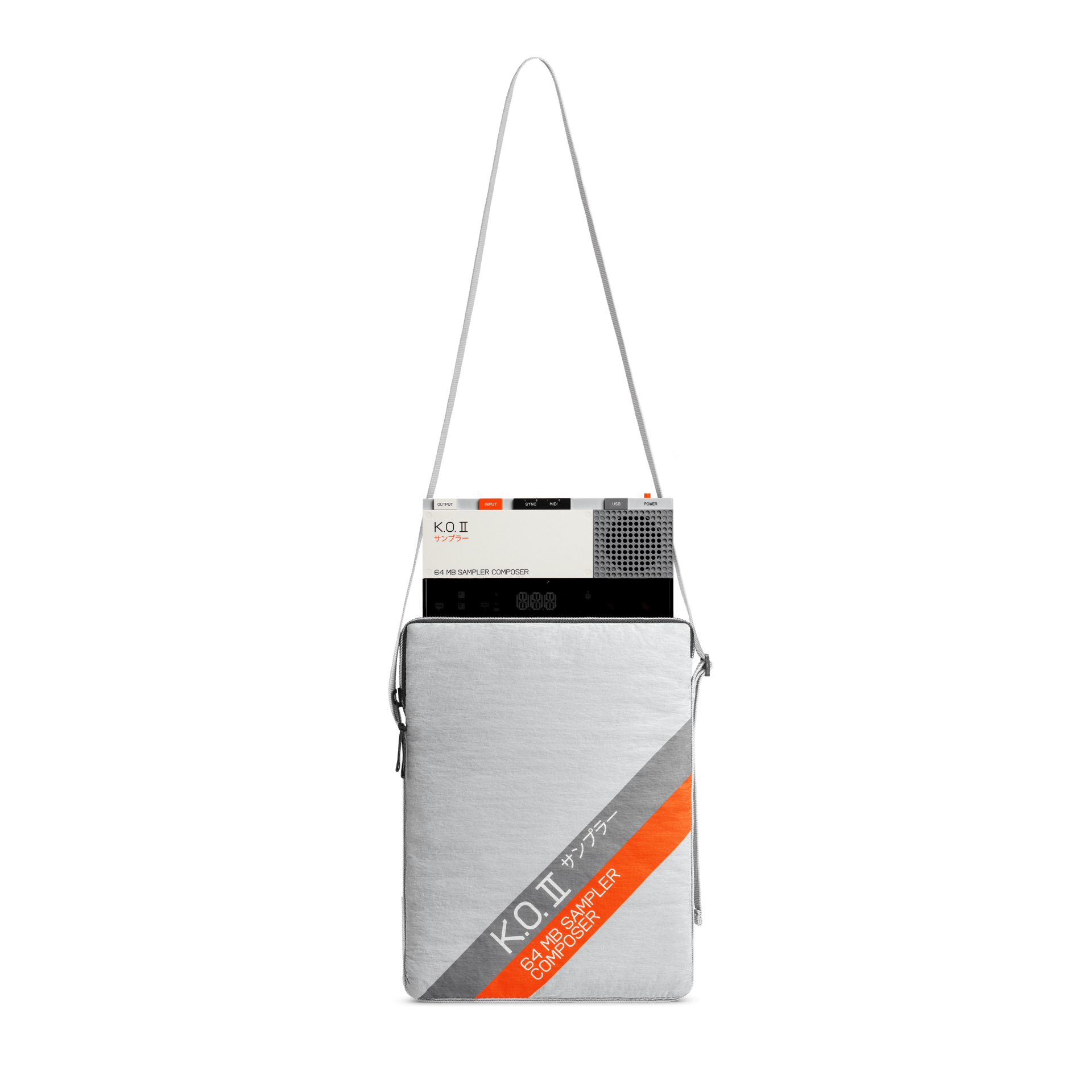 Proteggete il vostro K.O. II con la borsa morbida personalizzata realizzata in tessuto di nylon leggero e morbida ovatta. è dotata di una cinghia regolabile e di una grafica K.O. II stampata sul davanti. il retro è realizzato in rete di nylon con una tasca per riporre accessori e cavi.