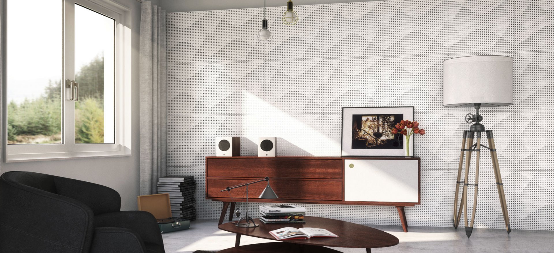 Verona Absorber’s main goal is to treat absorption problems at medium and high frequencies, reducing standing sound waves and their reflections. Verona’s unique pattern renders a 3D effect on its surface, allowing you to arrange them in several stylish designs, creating a unique and distinguished ambience in your room.