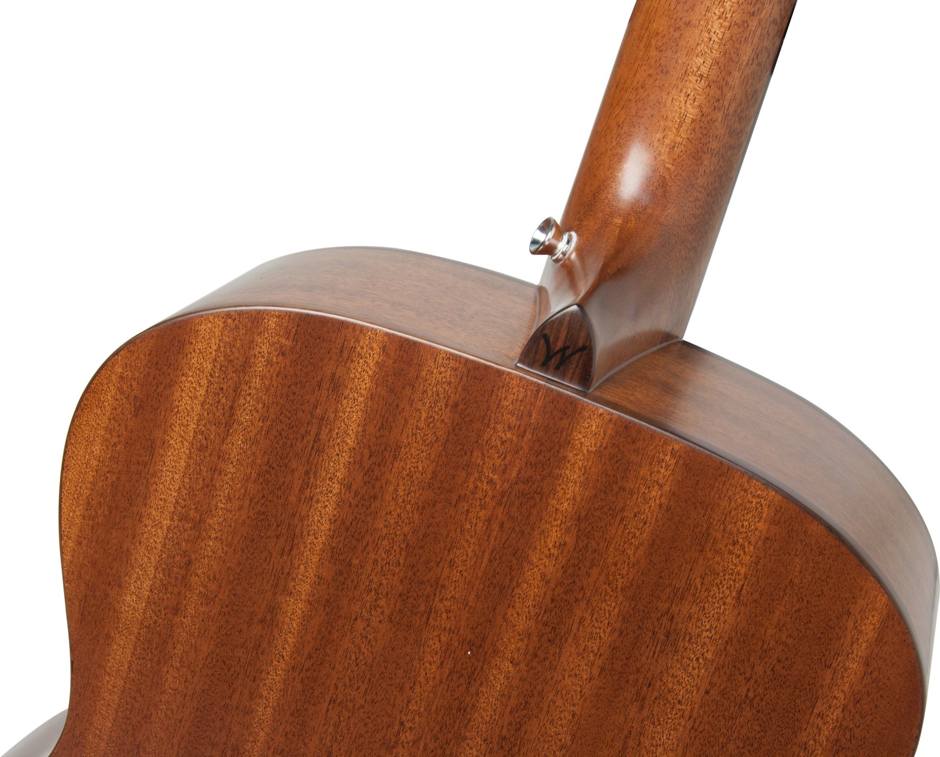 La chitarra ha un un top in abete massello Sitka con rinforzi Cathedral Peak Scalloped-X abbinato a fondo e fasce in mogano e un capotasto e e una sella in osso, che regalano alla chitarra una voce nitida e classica.