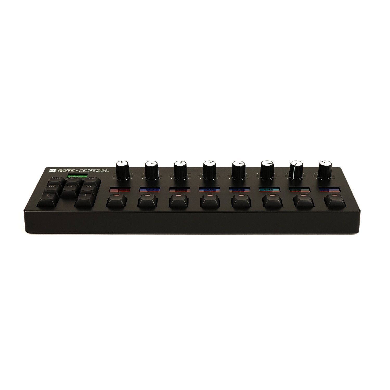 Roto-Control ridefinisce le interazioni tra software e hardware grazie a manopole motorizzate sensibili al tocco completamente assegnabili, feedback tattili definibili dall'utente per un controllo dettagliato, schermi ad alta risoluzione con etichette di facile lettura per ogni controllo e una memoria interna in grado di memorizzare migliaia di assegnazioni. Potente, compatto e portatile, Roto-Control offre tre modalità di funzionamento principali: MIX, PLUGIN e MIDI con Motion Recorder. Le manopole motorizzate di Roto-Control sono una novità assoluta per i controller MIDI. Sono state progettate su misura a partire dal design dei motori per droni. Hanno un design estremamente robusto e altamente affidabile che praticamente non si usura mai. Il rilevamento della posizione è ottenuto utilizzando un sistema ottico senza contatto con risoluzione estremamente alta e rumore ultra-basso.