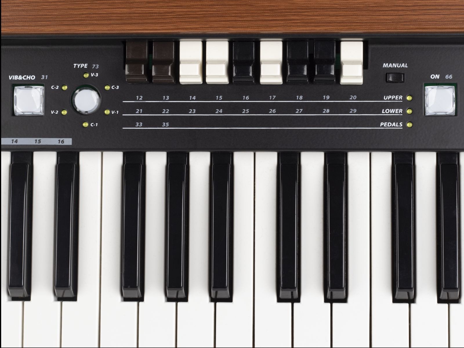 - Selettori per manuale superiore, manuale inferiore e pedaliera