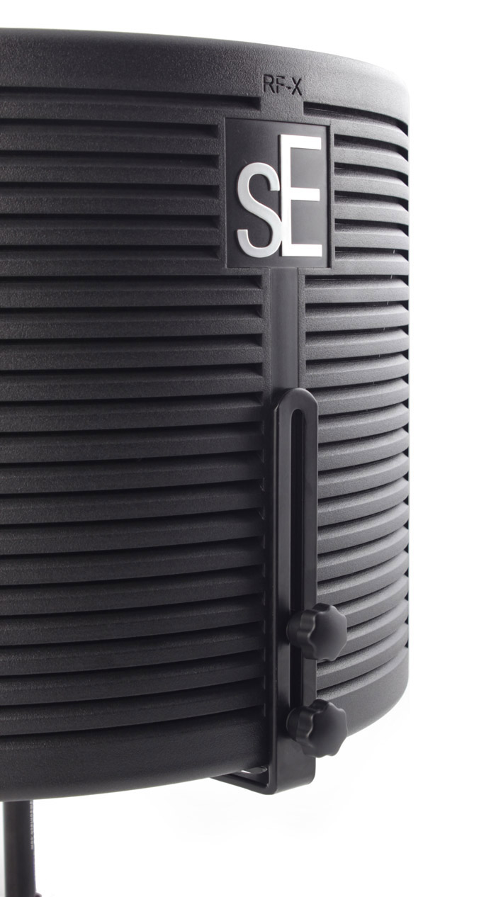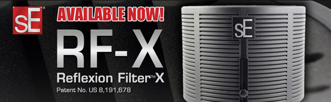 sE Electronics ha sviluppato nuovi materiali per rendere l'RF-X ancora più leggero dei suoi predecessori, mantenendo intatta l'affidabilità nel tempo. RF-X è estremamente semplice da posizionare, anche negli ambienti di lavoro più difficili. L'RF-X ha un design a 4 strati di materiali assorbenti diversi: il pannello composito esterno, uno strato in lana di vetro, un'intercapedine d'aria e uno strato interno di gommapiuma acustica. Questo design multistrato rende l'RF-X diverso da altri prodotti della stessa tipologia, in quanto garantisce l'assenza praticamente totale di colorazione timbrica della sorgente. Anche il supporto è stato riprogettato, e sfrutta un nuovo design estremamente leggero che consente l'utilizzo con qualsiasi tipo di asta microfonica. Il nuovo sistema consente il montaggio esclusivamente verticale, e rende l'RF-X perfetto per le registrazioni di voce.