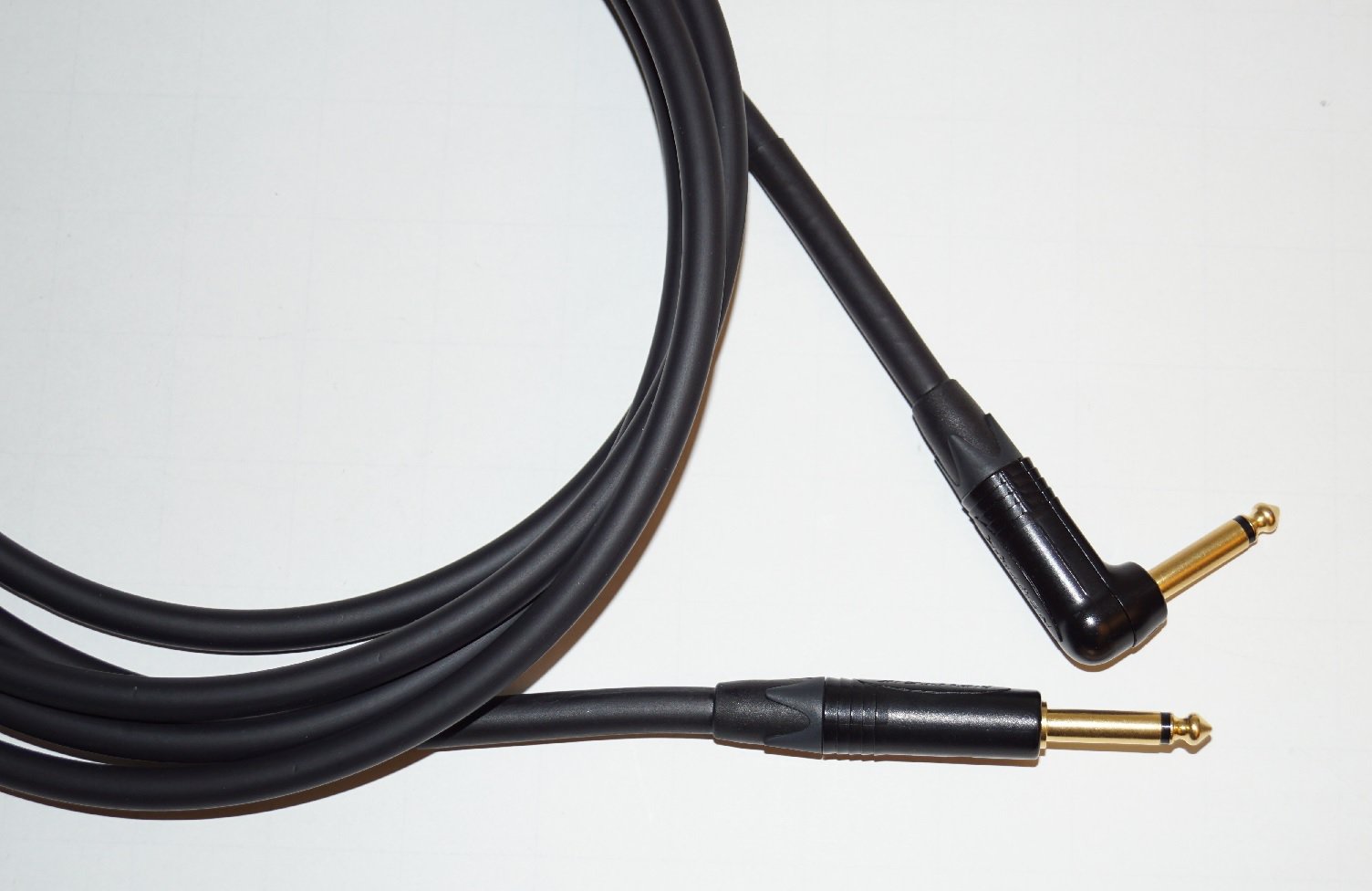 Connettori Neutrik NP2RX-B Jack ad angolo retto <> Neutrik NP2X-B Jack, involucro nero cromato, contatti gold plated. Cavo Mogami 3368 a bassa capacitanza, nero, coassiale "Mogami by Lake People” cavi fatti con passione, prodotti in Giappone ed assemblati, con la massima precisione, in Germania.