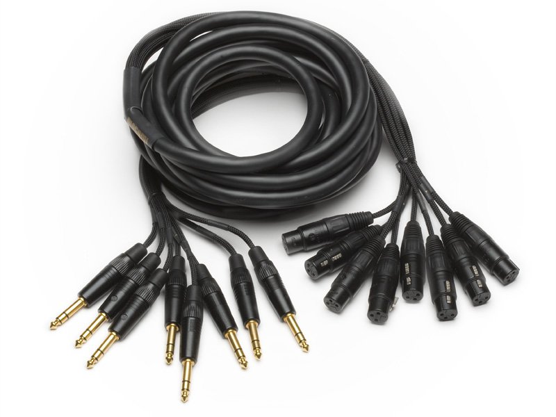 8 jack Neutrik NP3X-B <> 8 Neutrik NC3FXX-B XLR femmina, scocca connettori cromata nera, contatti placcati oro.