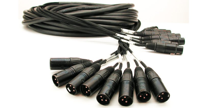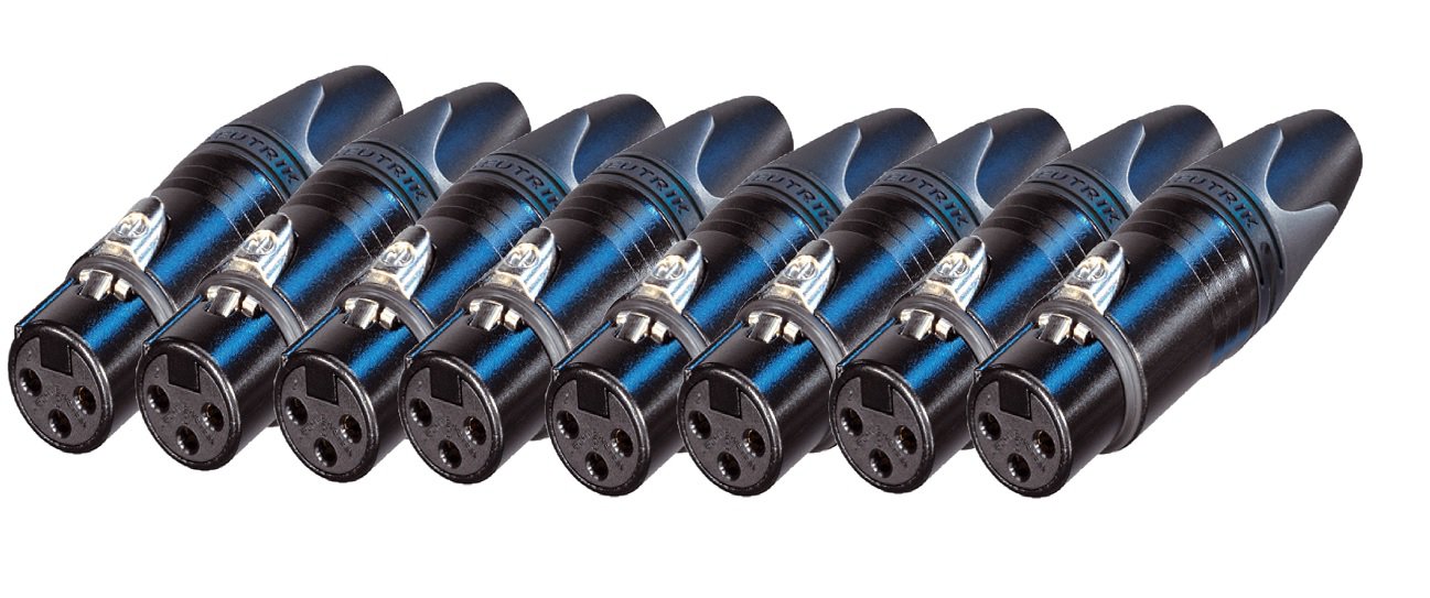 8 Neutrik NC3FXX-B XLR femmina <> 8 Neutrik NC3MXX-B XLR maschio, scocca connettori cromata nera, contatti placcati oro.