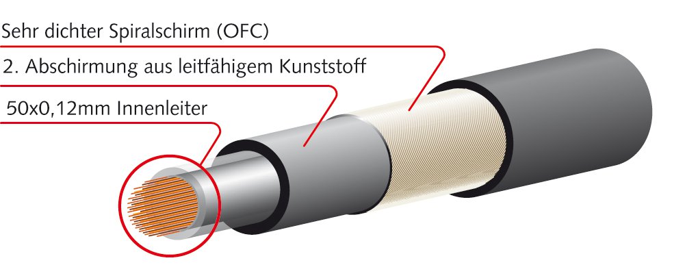 • Ampio conduttore interno con 50 core da 0,12 mm