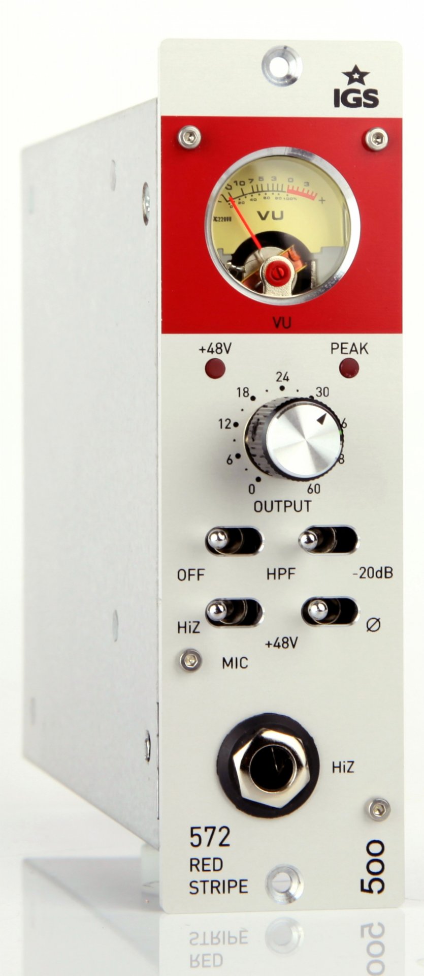 572 Red Stripe è un preamplificatore per microfoni e strument progettato nello standard 500.