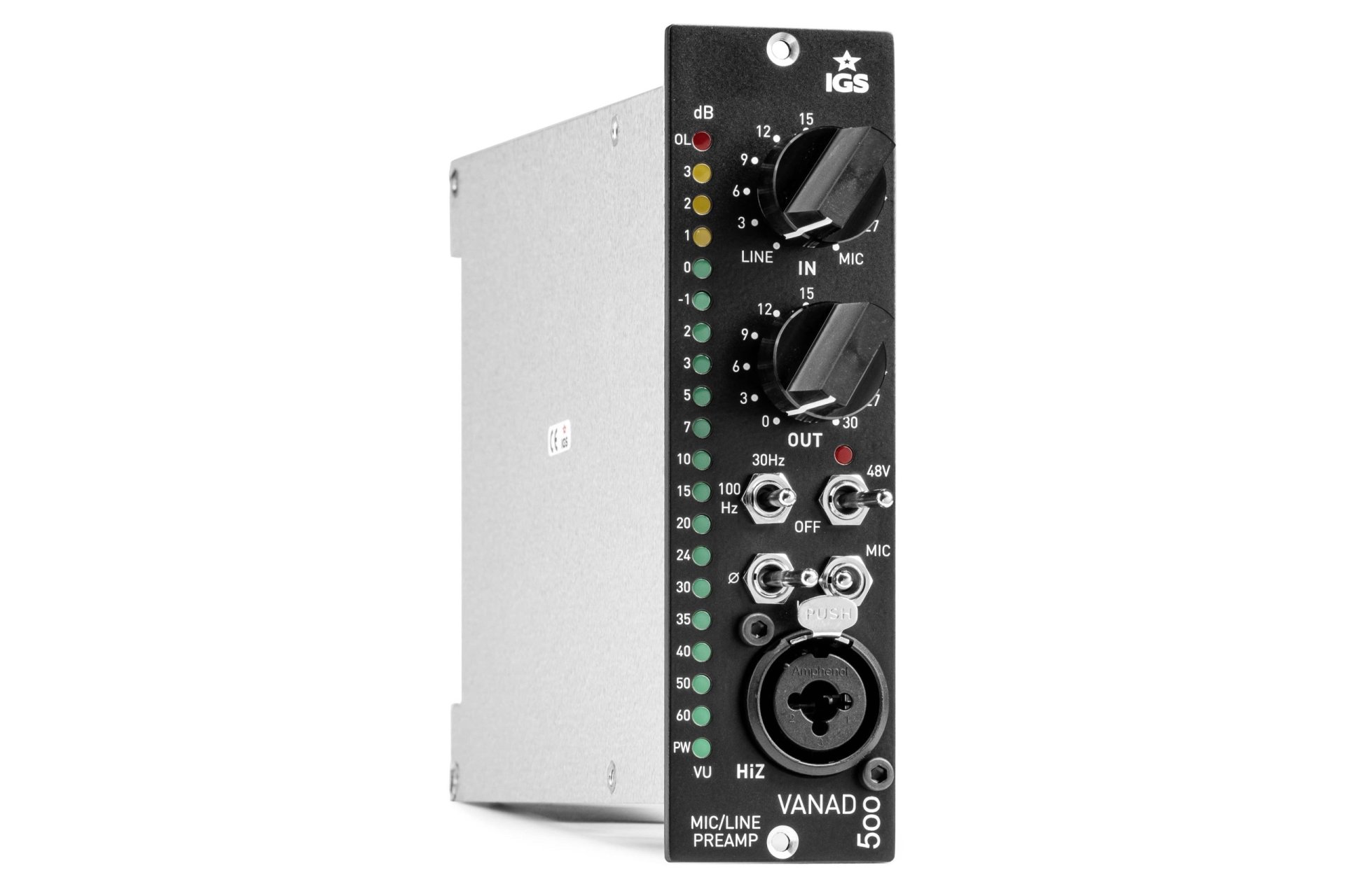 VANAD 500 è un preamplificatore microfonico/strumentale progettato secondo lo standard API 500. Il modulo è dotato di ingressi ed uscite bilanciati da trasformatori IGS Custom made. Tutti i controlli sul pannello frontale sono a step. Eccellente per la registrazione di qualsiasi sorgente, compresi i segnali di linea provenienti da strumenti come chitarre o tastiere (ingresso Hi-Z sulla parte anteriore dell'unità).