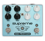 Il Supreme nasce dalla collaborazione con l’eccellente chitarrista ed esperto di suoni Matt Schofield, alla ricerca dei migliori suoni possibili di overdrive oltre ad una funzionalità specifica: la possibilità di passare da un effetto all'altro con una sola pressione dello switch. I toni sono stati impostati in modo da ottenere: Sul lato A un ottimo boost e un drive a basso guadagno Sul lato B un tono FAT e dinamico con una risposta da “power amp” con molta headroom. Mentre la parte A si ispira al famoso Royal Blue Overdrive, la parte B è un progetto completamente nuovo, dedicato principalmente all’utilizzo con il pickup al ponte. Entrambi gli effetti sono dotati di sezioni EQ molto versatili. Il Supreme può essere anche utile da abbinare ad un amplificatore a canale singolo, regolando l’effetto A per il suono ritmico e l’effetto B per i lead, ottenendo due diversi livelli di guadagno e volume, raggiungibili con una sola pressione dello switch. In altre parole, si può bypassare o passare facilmente da un "canale" all'altro con un'equalizzazione/guadagno/volume completamente individuali, senza dover ricorrere a un complesso switcher programmabile! E il divertimento non finisce qui: E’ anche possibile regolare separatamente entrambi gli effetti e poi sovrapporli. La sovrapposizione dei drive consente un’ ulteriore varietà di suoni. Il Supreme in modalità “stacking” funziona al meglio nel caso in cui abbiate bisogno di maggiore guadagno e compressione.