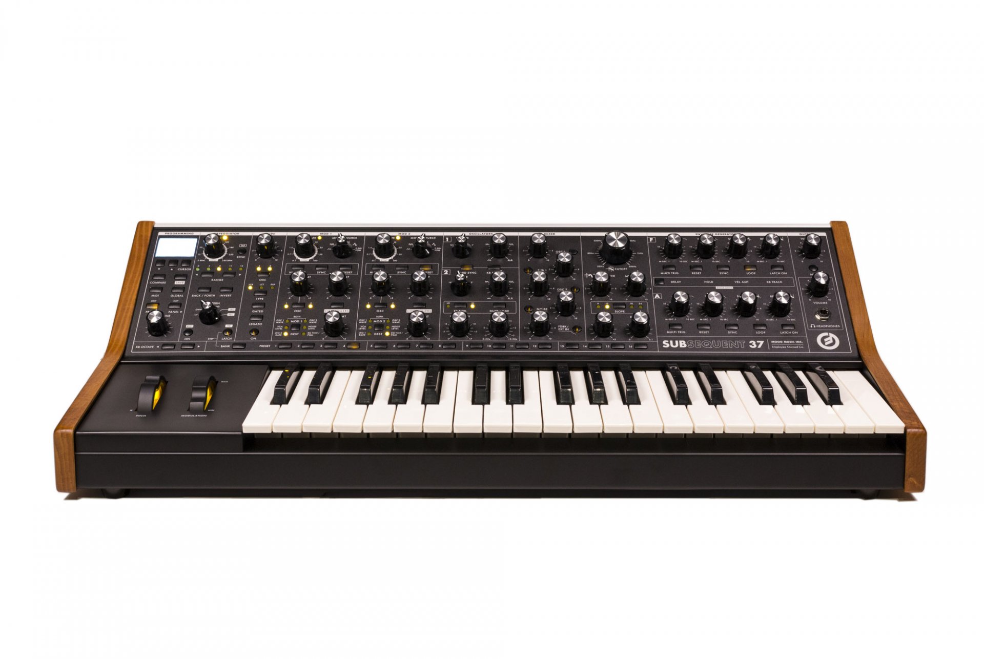 A completamento della evoluzione sonora del Subsequent 37 è stato rivisto il circuito Multidrive, che si estende ora ben oltre il “grit and growl” del Sub 37 originale. In aggiunta al potenziamento del sound engine, il Subsequent 37 offre una tastiera aggiornata per una migliore suonabilità, un amplificatore per cuffia potenziato e sufficientemente potente per essere utilizzato con le cuffie più esigenti, ed un plugin/editor software sia per Windows che per Mac.