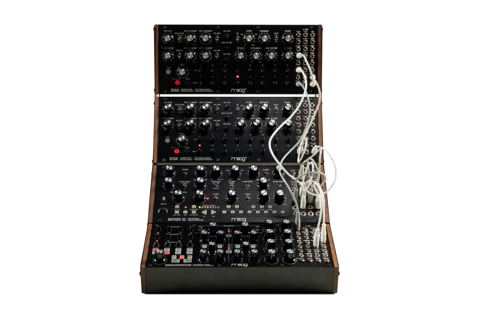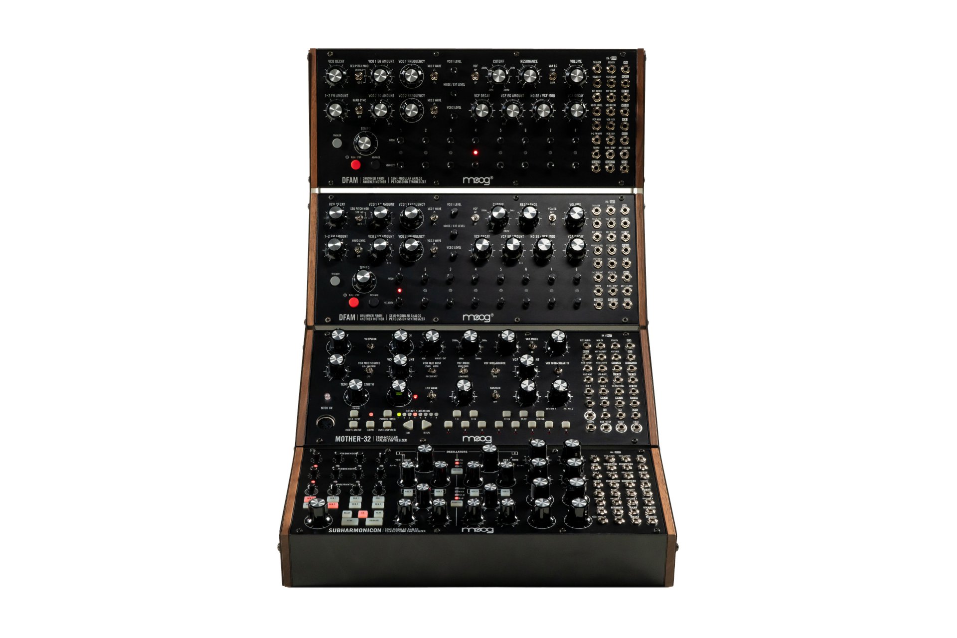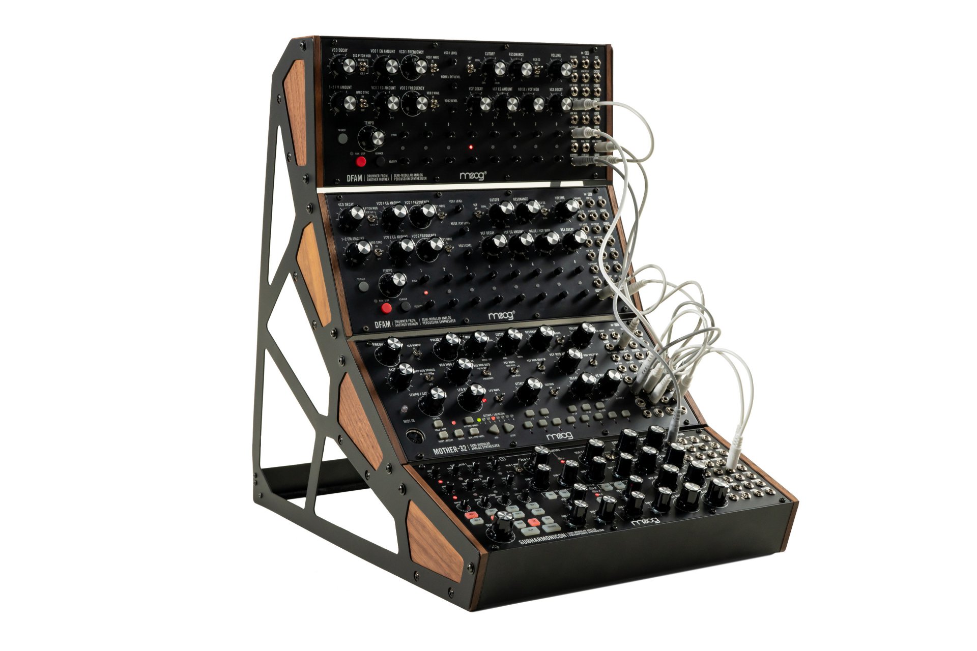 Moog rende disponibile il rack tier da 4 slot che consente di avere in un'unica soluzione e in verticale una qualsiasi combinazione di 4x Mother-32s, DFAM e Subharmonicon, così come il case Moog Eurorack da 60HP. Il Moog semi-modular 4-Tier Rack Stand si va ad aggiungere ai modelli preesistenti da 2 e 3 slot.