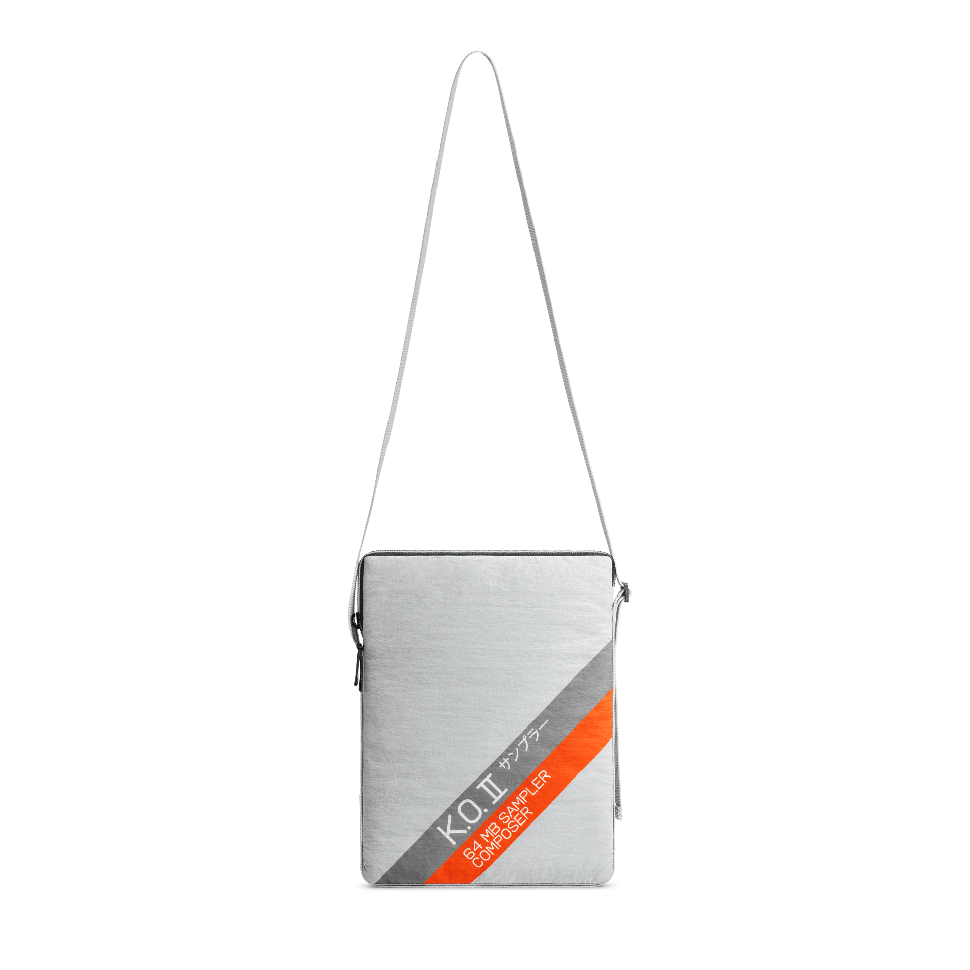 Proteggete il vostro K.O. II con la borsa morbida personalizzata realizzata in tessuto di nylon leggero e morbida ovatta. è dotata di una cinghia regolabile e di una grafica K.O. II stampata sul davanti. il retro è realizzato in rete di nylon con una tasca per riporre accessori e cavi.