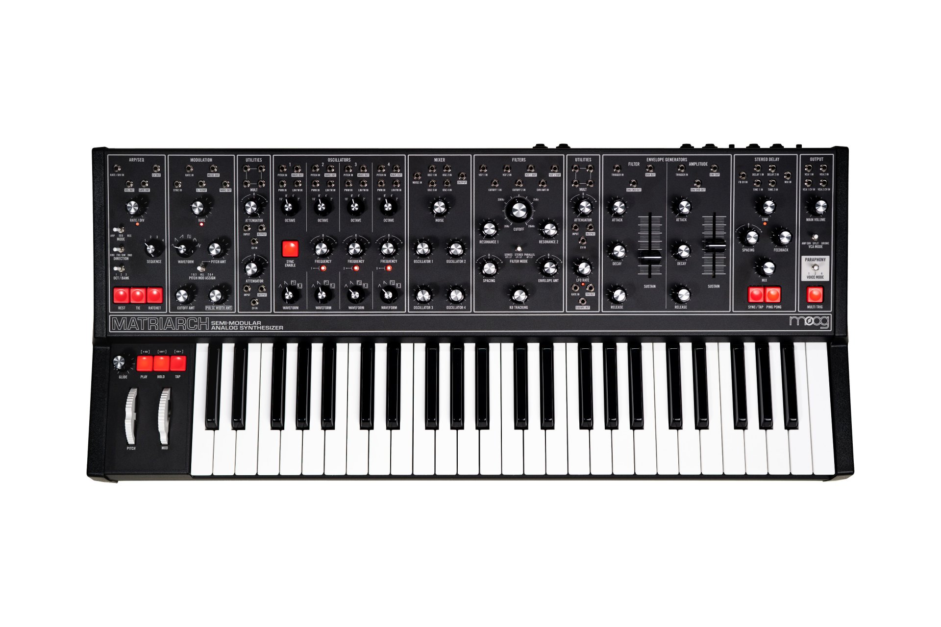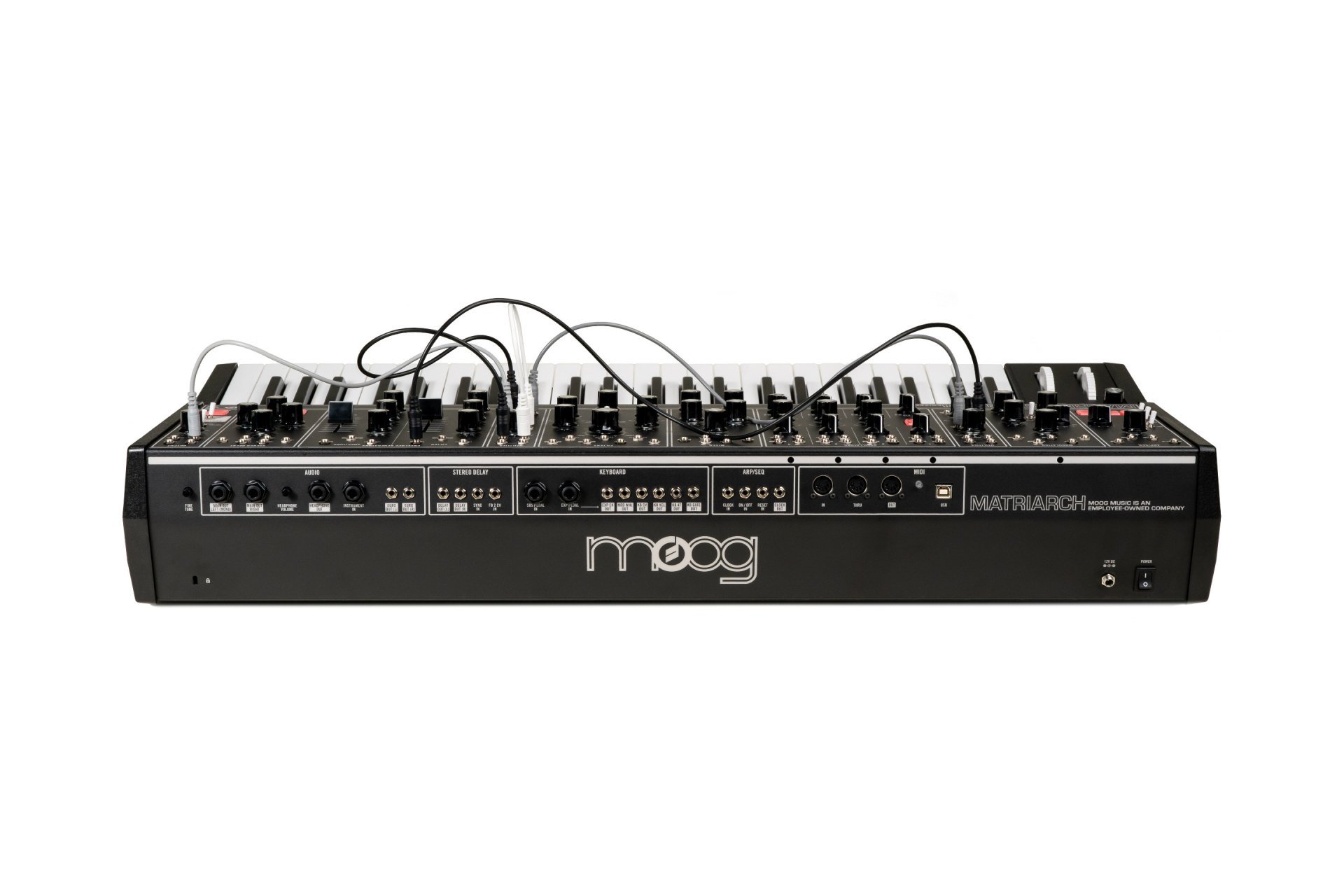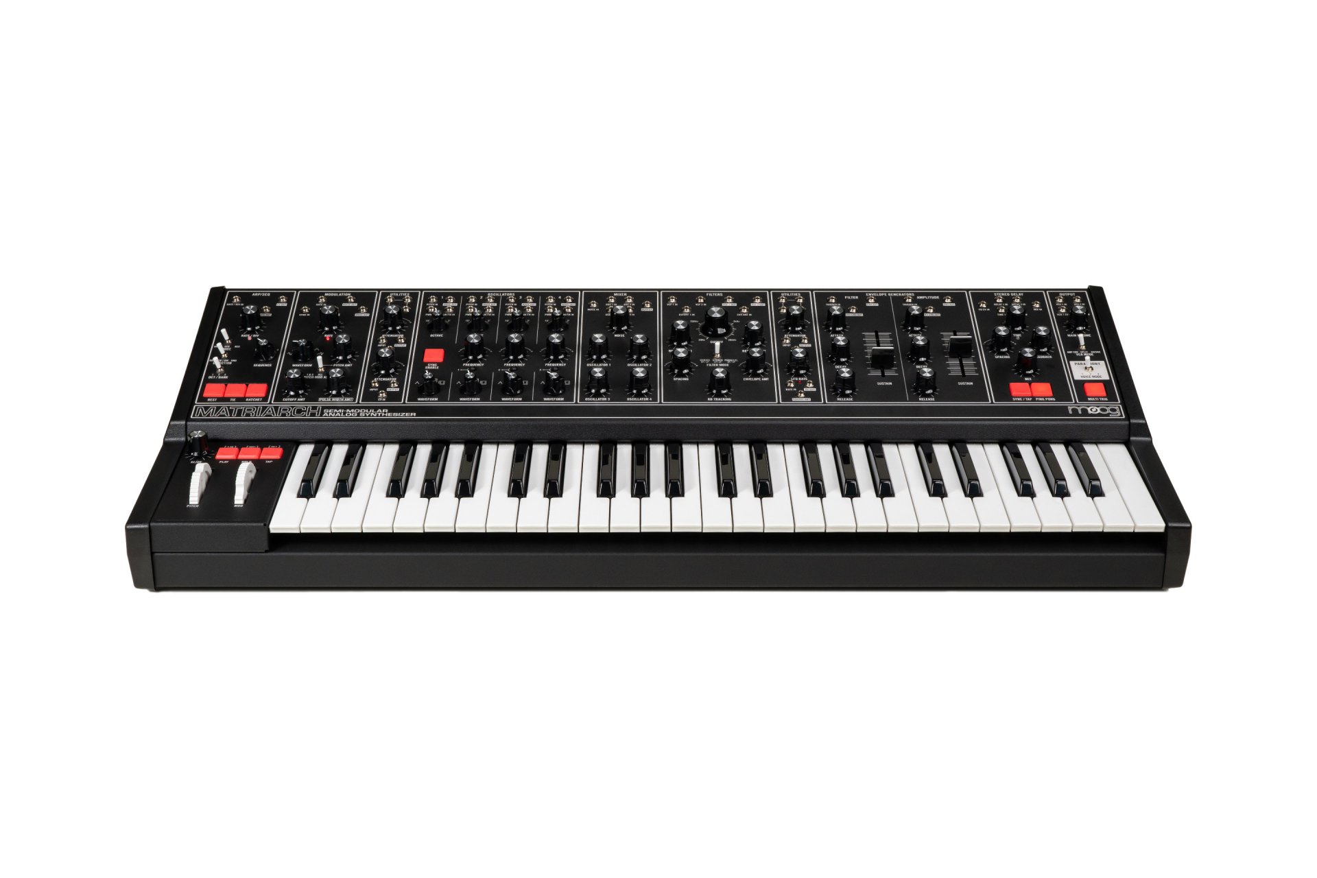 Moog Matriarch è un sintetizzatore analogico a 4 voci di parafonia che prevede una nuova selezione di moduli della tradizione Moog in una nuova configurazione semi-modulare destinata a ridefinire gli standard di categoria. Dotato di una tastiera Fatar 49 tasti con velocity patchabile e aftertouch, prevede tra le caratteristiche più interessanti un Sequencer a 256 step, Arpeggiatore, Filtri Ladder stereo e Delay Analogico stereo. Matriarch non richiede patch per generare suoni complessi ed espressivi e nasce per essere il nuovo top di gamma di casa Moog per la categoria semi-modulare/Eurorack compatibile.