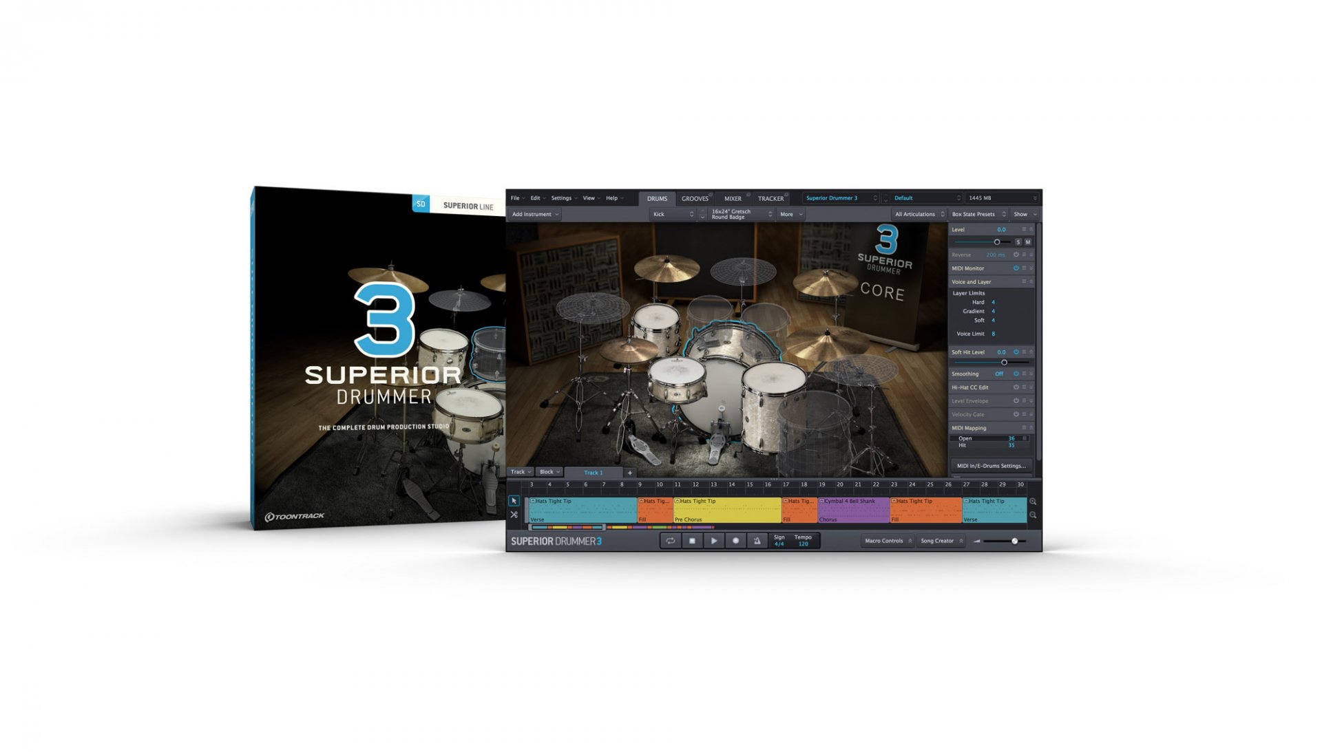 Ma Superior Drummer 3 non è soltanto un tool fondamentale per la produzione musicale, è un vero e proprio studio virtuale che introduce possibilità pressoché infinite per modellare e definire le vostre tracce ritmiche senza alcun limite alle possibilità creative.L’intera libreria di suoni in dotazione, che prevede circa 235 GB di materiale raw, è stata registrata da uno dei più importanti audio engineer al mondo George Massenburg nei Galaxy Studios in Belgio, location ideale per il sampling.