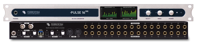Come il Pulse16, il Pulse16 MX offre 16 ingressi e uscite bilanciati 16e processa livelli fino a +20dBu in qualità professionale. Offre anche una porta MADI ottica per modulo SFP e quattro porte I/O ADAT come interfacce digitali.