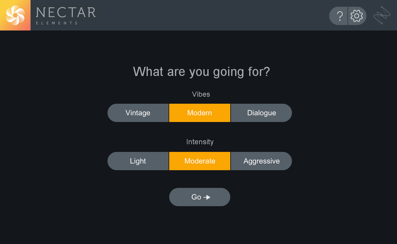 Seleziona tra tre differenti “Vibe modes” per indicare a Nectar che tipo di sonorità vuoi ottenere. Le possibilità permettono di arrivare a una voce lead che emerge in maniera decisa da un mix rock, oppure a un caldo cantato di sottofondo per un arrangiamento jazz o un bellissimo dialogo per il podcast.