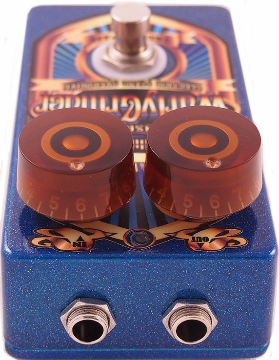 Il Wurly Grinder è un pedale preamp/overdrive multistadio FET con diodi al germanio, true bypass. E’ un pedale che fornisce un suono autentico e un overdrive dalla pasta sonora valvolare, perfetto per piani elettrici, Wurlitzer, Rhodes. Presenta un controllo di drive e un controllo di volume. L’attacco dell’overdrive è graduale, facilmente controllabile e aggiunge compressione e armoniche di secondo ordine che faranno suonare il tuo piano come se fosse collegato ad un amplificatore valvolare. A differenza dell’Organ Grinder, la vivace fascia alta aggiunge un pò di brillantezza, più adatta al suono del piano elettrico. Chassis realizzato dall’artista Mark Hershberger.