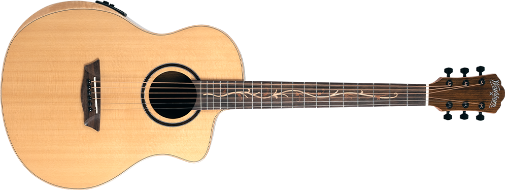 La Bella Tono Suprema offre un’esperienza di suono unica, grazie a numerosi dettagli pensati per il musicista, che raramente si trovano in una chitarra elettrificata di questa categoria. Al primo impatto, particolari di pregio come il binding in acero intorno al top in abete massello e l’intarsio a vite in legno, trasmettono la sensazione di uno strumento davvero speciale. E fin dalle prime note, la Bella Tono Suprema sorprende con un timbro ricco e deciso, nonostante il corpo di dimensioni compatte che garantisce grande comfort. A questo si aggiungono la spalla mancante per ridurre l’affaticamento del braccio e l’elettronica Barcus Berry LX4 per un suono amplificato di livello assoluto. La Bella Tono Suprema rappresenta un ulteriore passo in avanti di Washburn nella realizzazione di chitarre uniche e di grande pregio.