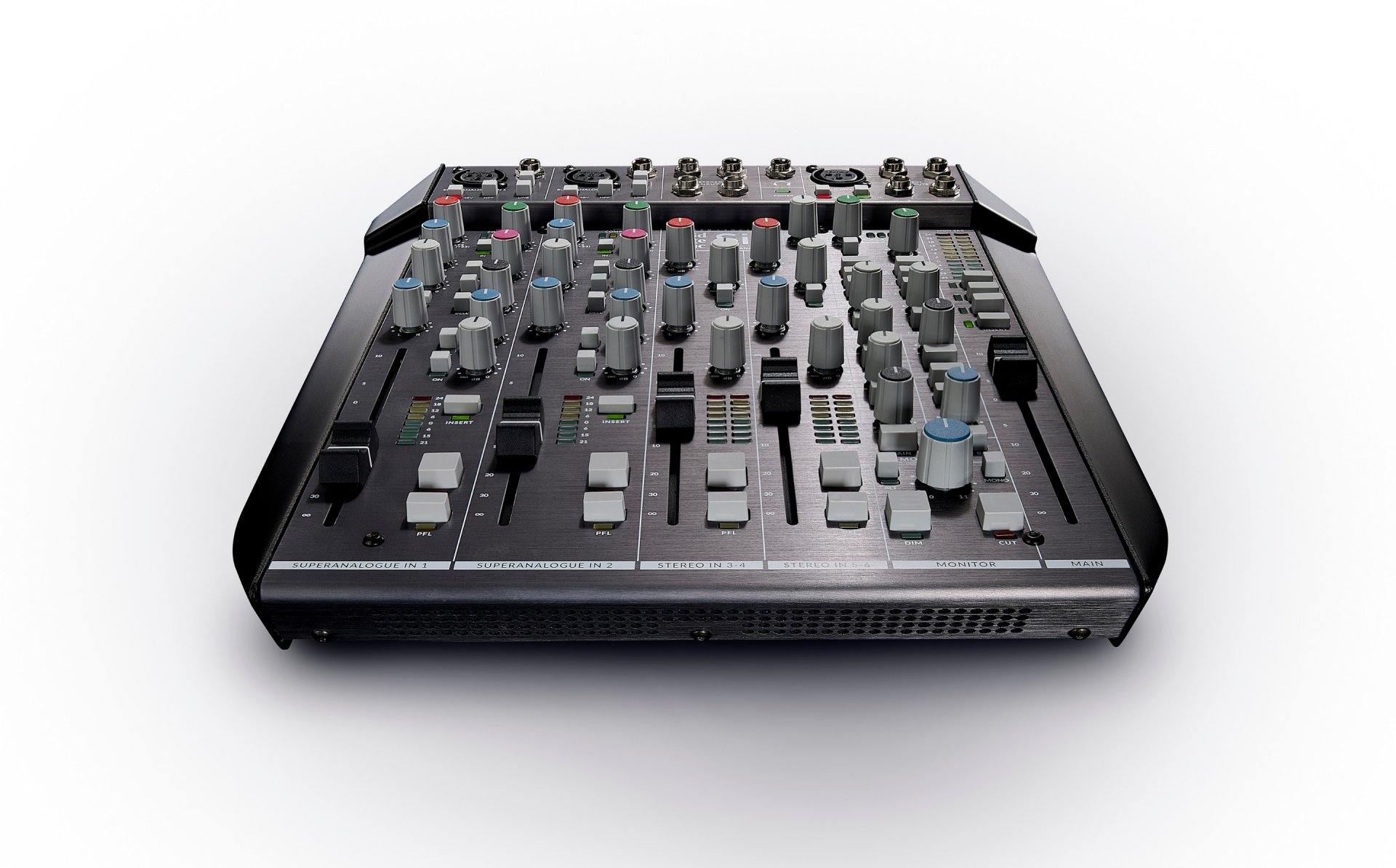 Il prestigioso marchio inglese ha optato per questa scelta per certi versi rivoluzionaria, dopo aver fatto un'approfondita analisi di mercato nel settore dei desktop mixer. A seguito di questa ricerca è risultato che molti mixer presentano discrepanze di livello tra i canali, due fader a 0dB possono avere un dislivello reale fino a 5dB. I mixer più economici poi non bilanciano in maniera adeguata Left e Right, presentando dislivelli anche di 3dB tra i canali. I preamp microfonici oscillano di solito tra i 45dB e 55dB di gain, sono sbilanciati e hanno spesso problemi di rumore e interferenza tra canali. In ultimo, potenziometri e fader piccoli sono difficili da maneggiare con precisione.
