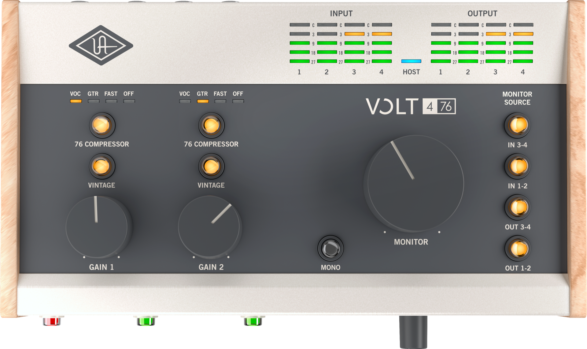 Volt 476 USB Recording Studio è la soluzione di registrazione USB completa di Universal Audio con 2 preamplificatori, 4 ingressi, compressore integrato e 2 uscite per Mac, PC, iPad e iPhone.