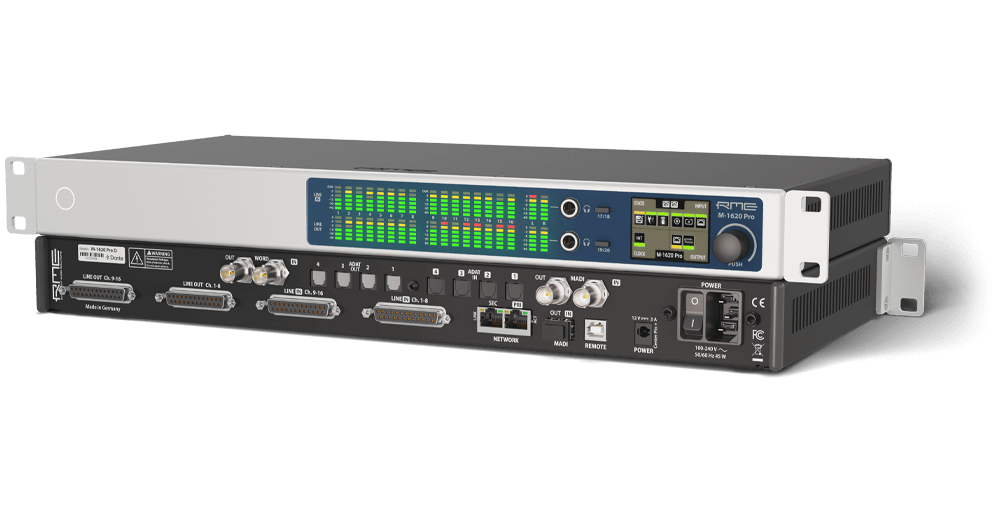 Inoltre, due uscite per cuffie forniscono 4 canali aggiuntivi per il monitoraggio. Il tutto avviene in un dispositivo rack da 19” da una sola unità con un pannello frontale di nuova concezione che combina meter di livello individuali direttamente sul display della macchina. Un'aggiunta indispensabile per le installazioni audio immersive, ma anche un'estensione versatile per qualsiasi audio network. Una serie di funzioni avanzate completano la dotazione di I/O: due porte di rete forniscono ridondanza o consentono il collegamento in cascata all'interno della stessa rete (solo modello Dante). I connettori BNC e coassiali per MADI o Word Clock sono forniti di default mentre il MADI ottico può essere aggiunto con un modulo SFP opzionale, rendendolo ideale per le applicazioni che richiedono un numero elevato di canali ad alte frequenze di campionamento. I canali di entrambe le porte MADI possono essere indirizzati singolarmente verso e da le porte AVB o Dante. La connettività Dante era una richiesta frequente ed è stata integrata per funzionare in modo nativo sull'hardware dell'M-1620 Pro. Questa fornisce la possibilità di connettere direttamente altri dispositivi audio tramite uno switch di rete standard e consente agli utenti di registrare e riprodurre direttamente fino a 64 canali dal proprio computer a qualsiasi I/O analogico e digitale dell'M-1620 utilizzando la Dante Virtual Sound Card (licenza non inclusa).I modelli AVB trasmettono e ricevono fino a 128 canali a 48 kHz (96@96k, 64@192k) con una latenza precisa e fissa sull'intera rete. Ogni dispositivo rivela il proprio stato e le opzioni configurabili ai controller ATDECC della rete, consentendo di integrarlo in sistemi che utilizzano lo standard aperto IEEE 1722.1.