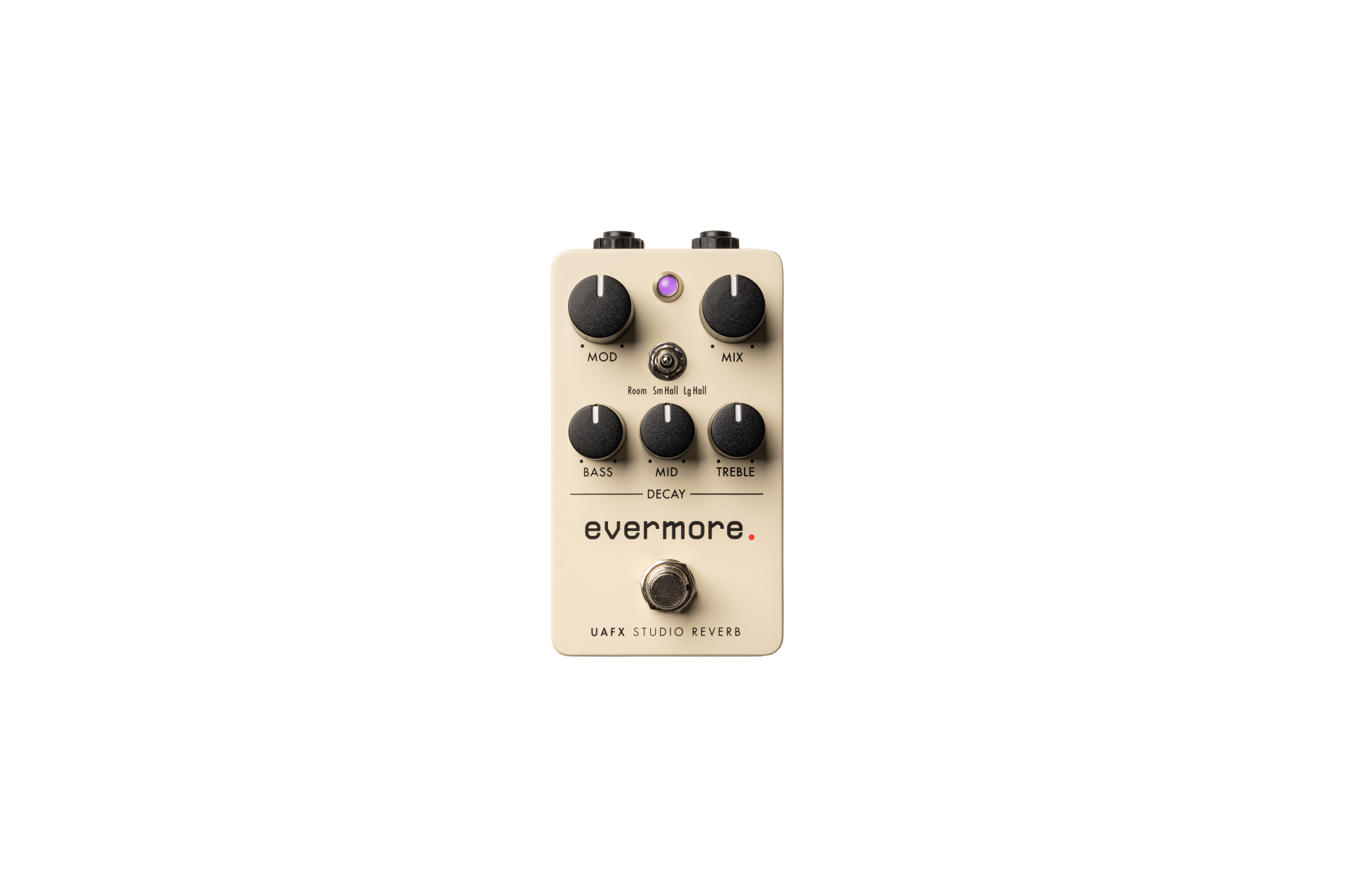 Il pedale offre tre iconici effetti: Room, Small Hall e Large Hall. L'Evermore vi trasporta negli spazi autentici dell'hardware vintage. Le regolazioni di decay per Treble, Mid e Bass, insieme al controllo Mod intuitivo, consentono di scolpire l'atmosfera sonora desiderata, permettendo di passare da toni delicati a sperimentazioni audaci.
