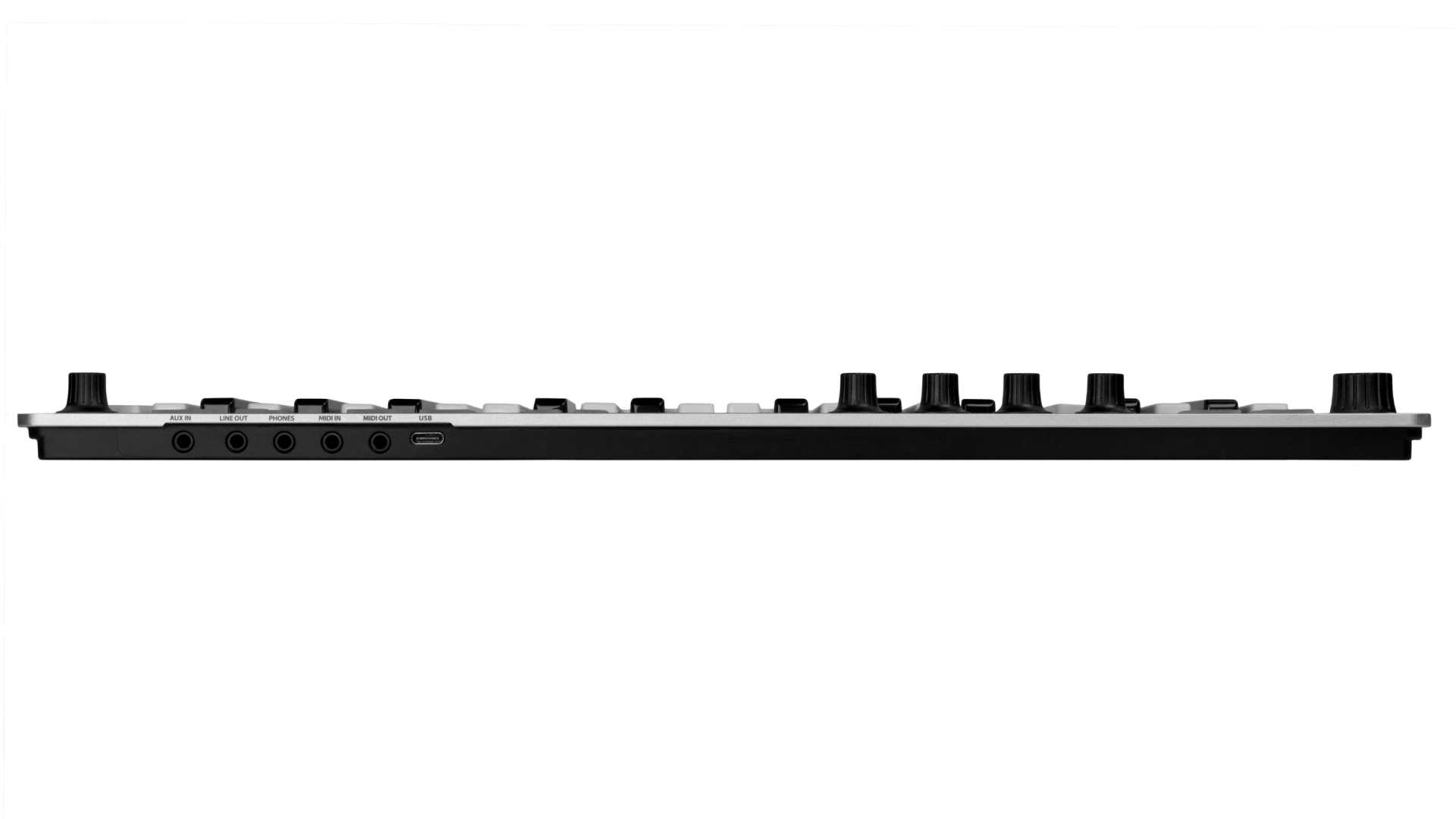 - Aftertouch polifonico, arpeggiatore, glide, cambio ottava, funzione hold