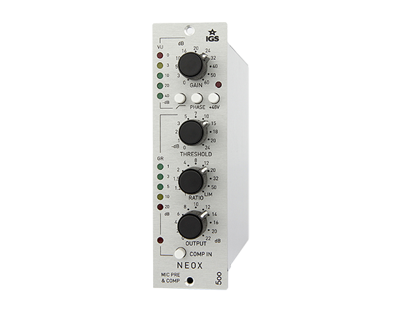 IGS Audio NEOX 500 is a microphone preamplifier and compressor combo fitted into a single 500-series module, that can work with any API 500 Series compatible rack.